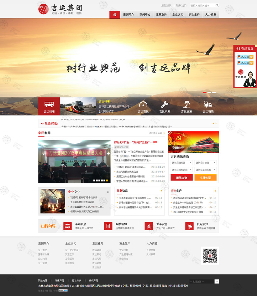 吉林吉運(yùn)集團(tuán)有限公司(以下簡(jiǎn)稱“吉運(yùn)集團(tuán)”)組建于1997年,隸屬中城建第三工程局集團(tuán),主要從事高速公路客運(yùn)和第三方物流代理服務(wù),是一家享譽(yù)吉林省大型交通運(yùn)輸企業(yè)。吉運(yùn)集團(tuán)把安全運(yùn)營(yíng)與服務(wù)品質(zhì)作為企業(yè)健康發(fā)展的核心,立足于高速公路、國(guó)省干線客、貨運(yùn)輸服務(wù)項(xiàng)目,不斷開(kāi)拓新業(yè)務(wù),成功進(jìn)入倉(cāng)儲(chǔ)理貨、國(guó)際貨代、廣告、公路工程、汽車維修、旅游、物流代理業(yè)務(wù)等多行業(yè),可謂吉林省交通運(yùn)輸服務(wù)行業(yè)的佼佼者...