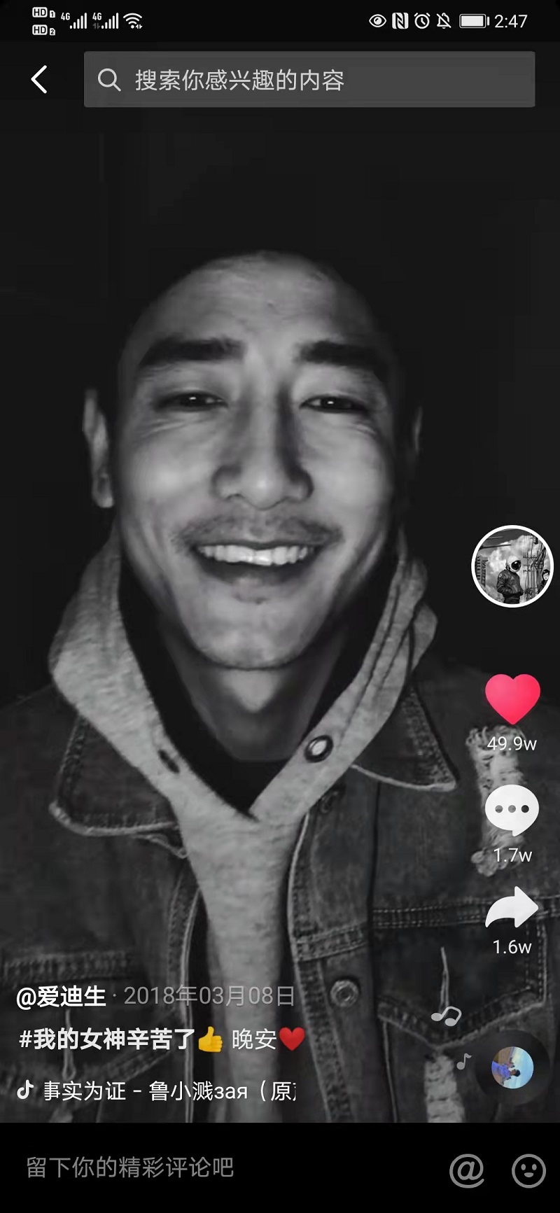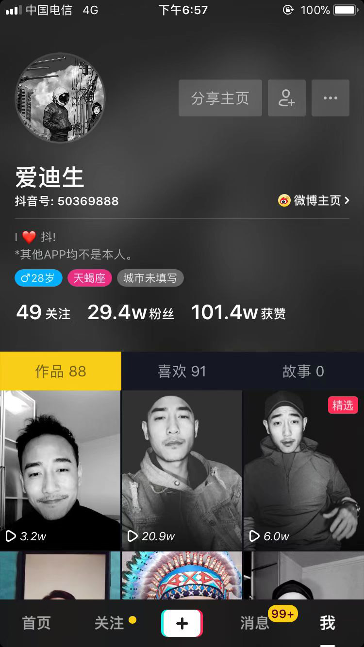 作品沒有特別高產(chǎn),但是個個精品,點贊量*高達(dá)49.9萬。哇塞,這是什么神仙流量啊!