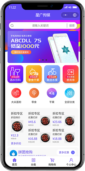 為了更好的推廣商品,在首頁中部,有一個(gè)廣告版塊,可以讓用戶快速定位到商品
