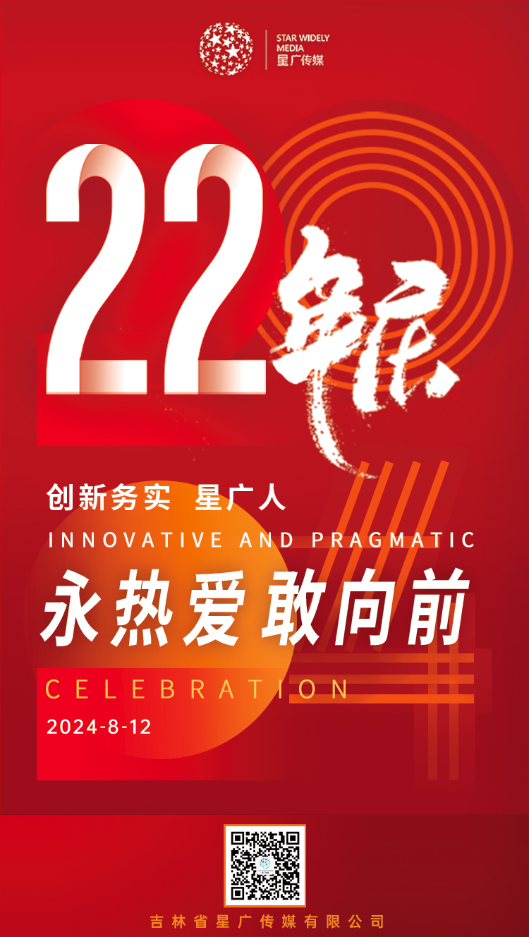 隨著歲月的流轉(zhuǎn),星廣傳媒迎來(lái)了它22歲的生日。在這段漫長(zhǎng)而又短暫的時(shí)光里,我們始終秉持著“創(chuàng)新務(wù)實(shí),以人為本,合作共贏”的企業(yè)精神,不斷在傳媒領(lǐng)域書寫新的篇章。